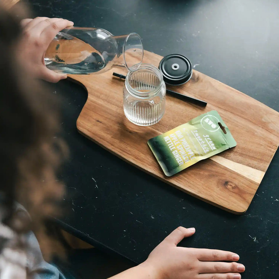 Liofilizowane owocowe smoothie w proszku ze szpinakiem, pokrzywą i imbirem