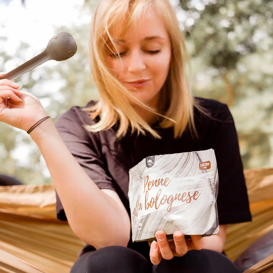 Liofilizowane danie: Makaron w sosie pomidorowym z mieloną wieprzowiną i wołowiną