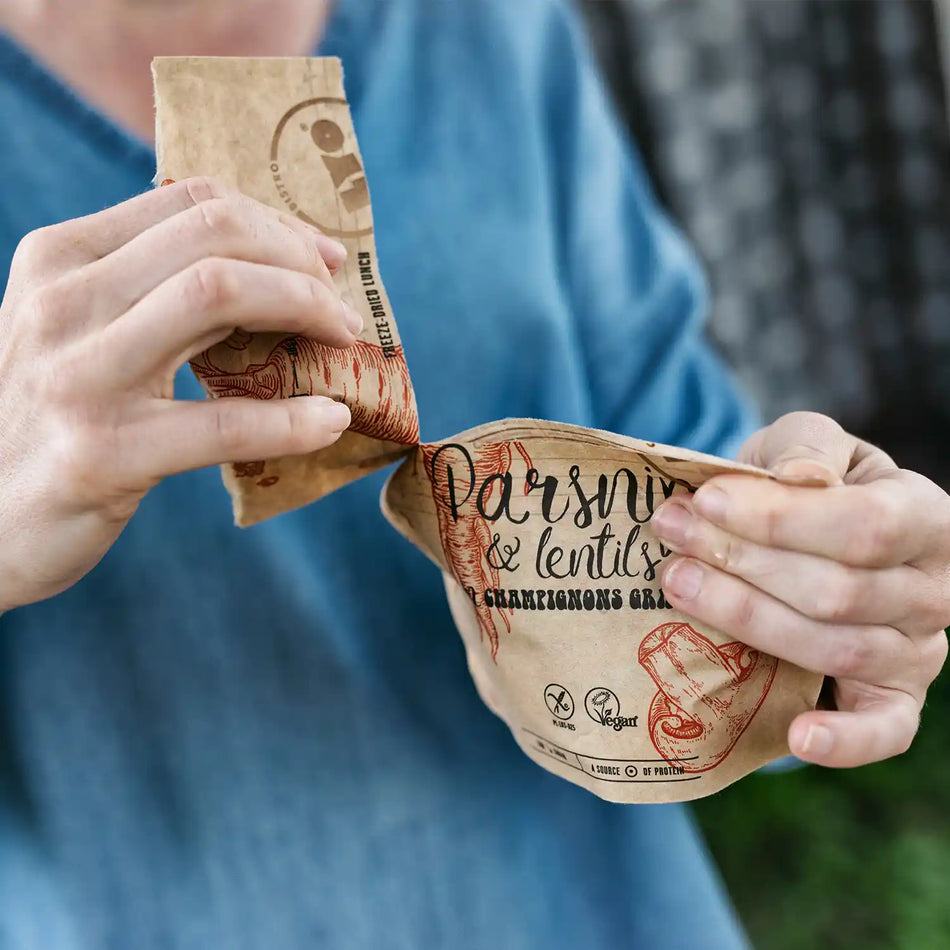 Liofilizowane danie: Pasternak i soczewica w sosie pieczarkowym