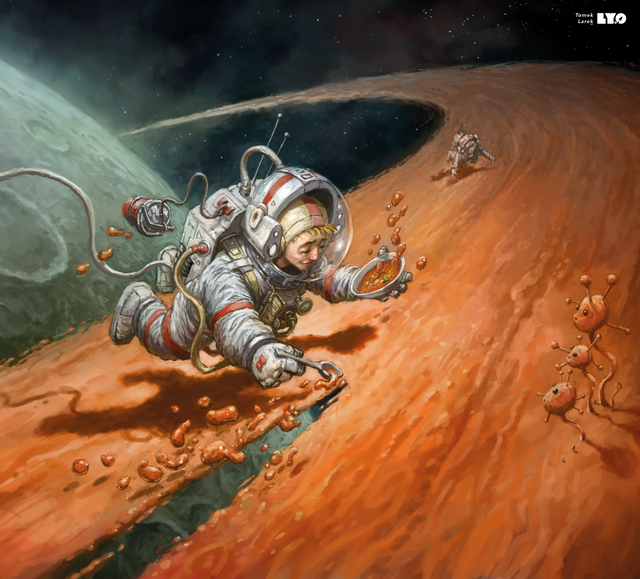 Ten, który rzeczywiście odbył podróż dookoła świata – i zapewne niebawem ruszy w kolejną. Zebrane na szlakach doświadczenia i inspiracje przemyca w swoich tworzonych cyfrowo pracach z pogranicza tradycyjnej ilustracji dziecięcej i mrocznej fantastyki. Jego baśniowy styl – podobnie jak naszą pomidorową – pokochają zarówno mali, jak i duzi pasjonaci kosmosu.