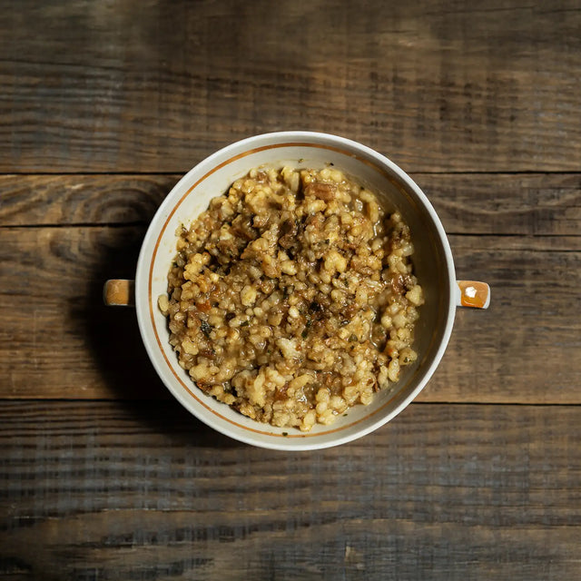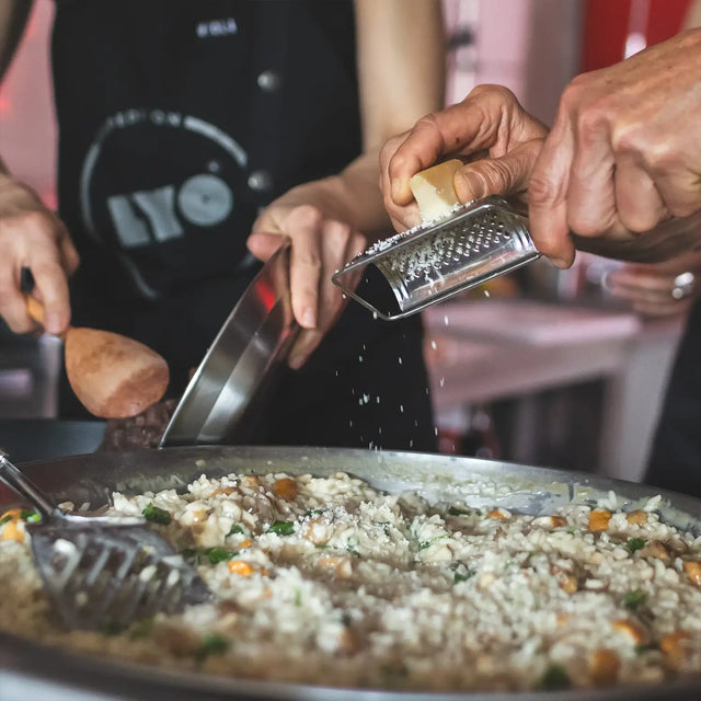 Risotto nie uznaje dróg na skróty. Ines Papert doskonale o tym wie, bo to jedno z jej ulubionych dań! Wspólnie udało nam się uzyskać złożoną teksturę, charakterystyczną dla tego pysznego i najbardziej eleganckiego dania z ryżu na świecie. Ugotowane „al dente” ziarenka w kremowej otulinie, soczyste kawałki borowika, hojna szczypta Pecorino Romano i zielonej pietruszki…